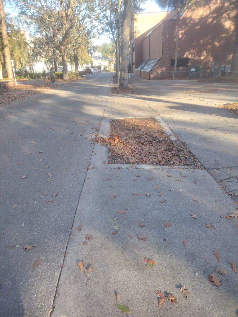 stadium road between Newell Drive and sw 13th street bricks have been removed