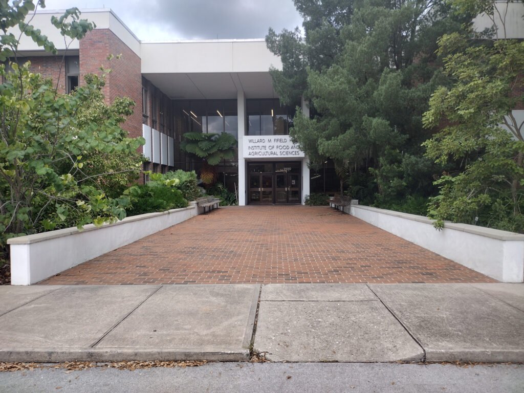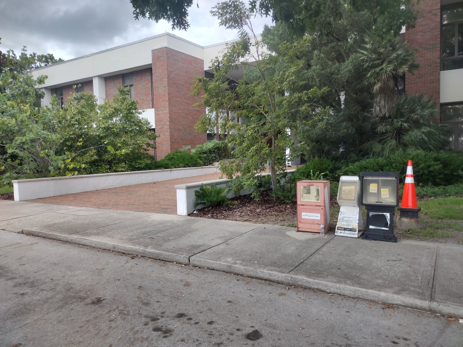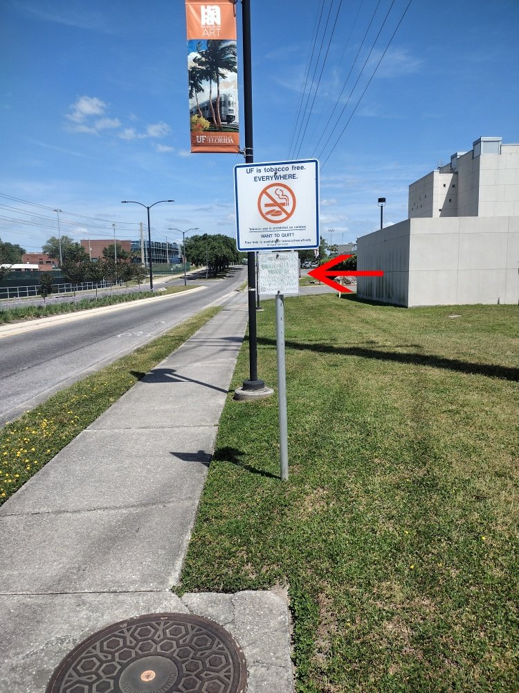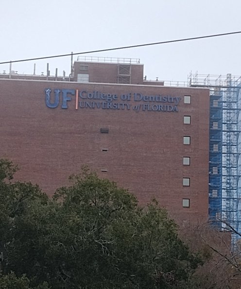 The sign attached to Shands Hospital (seen going east on Archer Road) with ‘UF College of Dentistry’ has some real discoloration problems. Should not happen at UF, especially with such visibility.