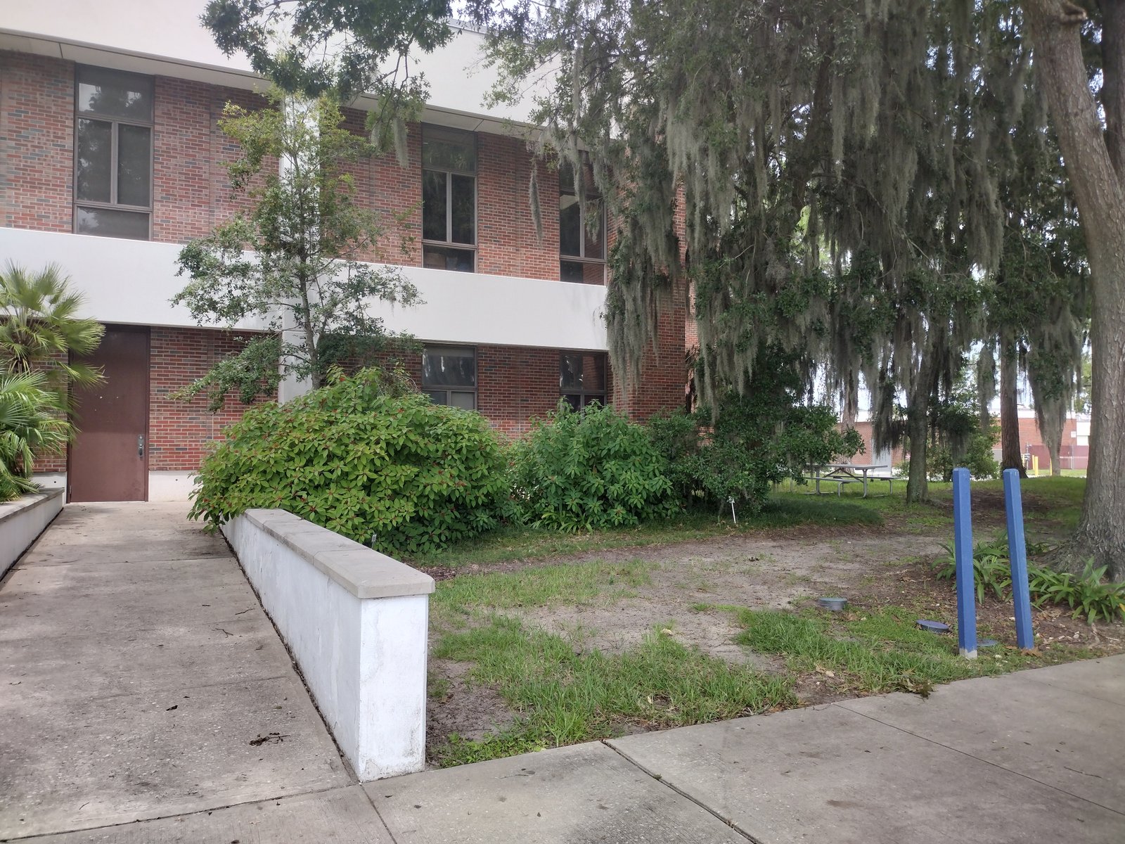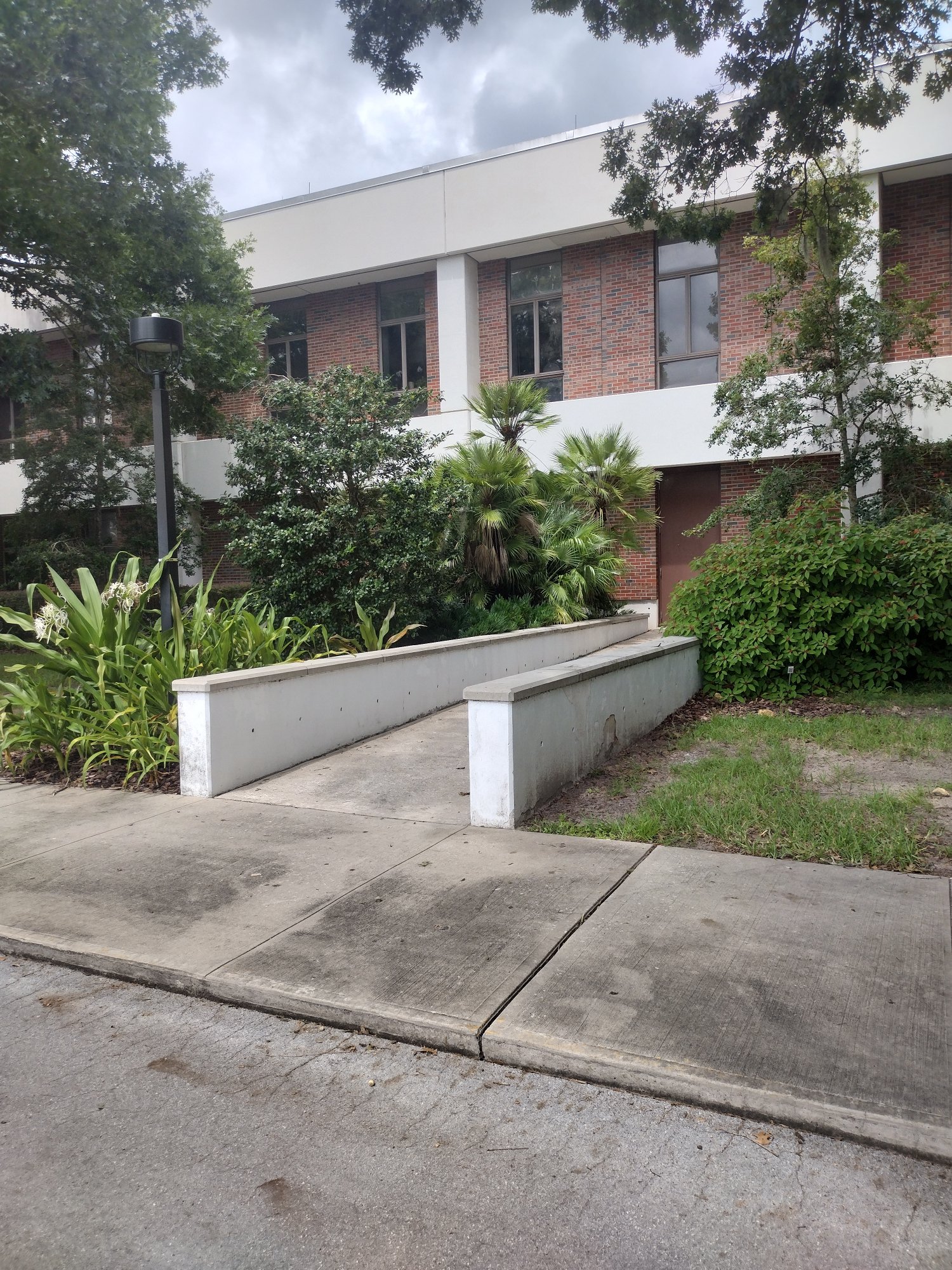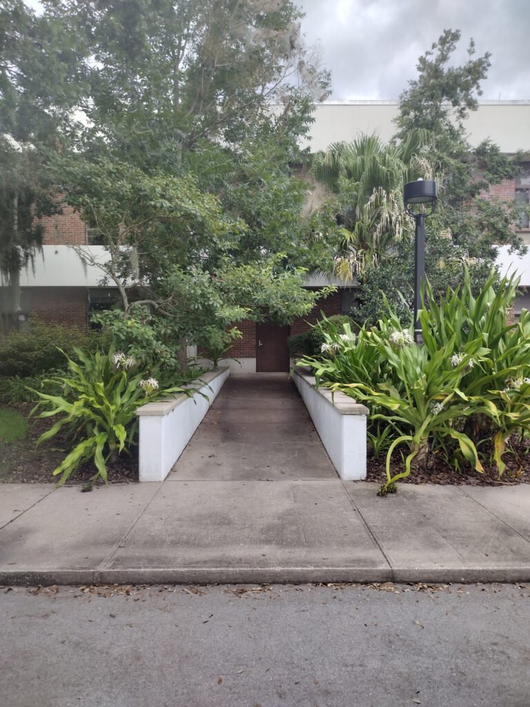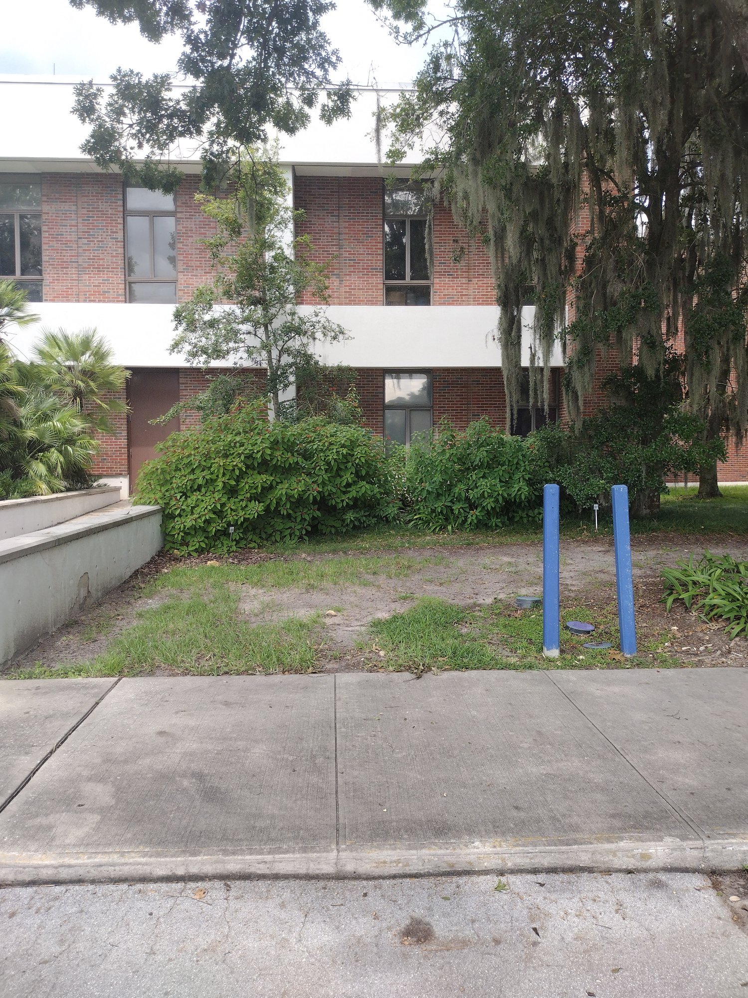 The University of Florida Gymnastics won three (3) National Titles, consecutively, and the recognition on the outside of the O’Connell Center is to the side of the building behind some trees beside the handicapped parking. I am not sure of what the problem is, yet they should have recognition on the outside in front of the Stephen O’Connell Center.