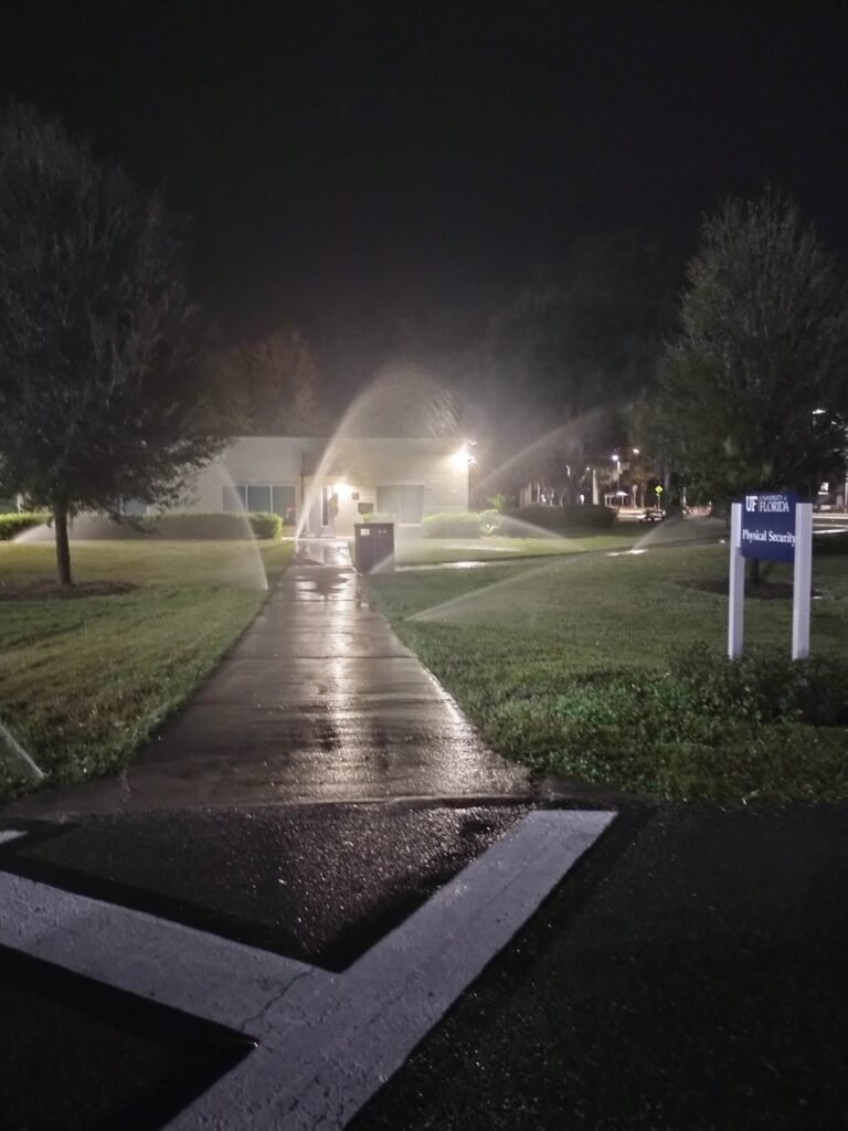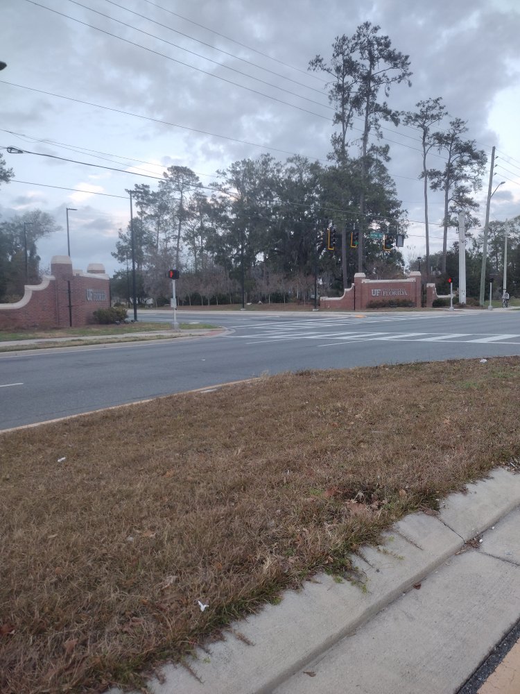 at every entrance to UF that has a brick and mortar sign with lights needs to be checked for burnt-out lights. They all have one or more light(s) burnt out.